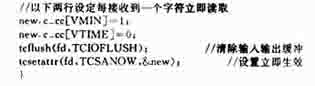 利用Linux自身的串口驱动程序进行编程,实际上就是调用驱动程序的一系列函数,完成串口通信参数的设置,数据的发送和接收。在这种方法中,Linux给每个串口都分配一个文件索引号,有相应的文件名称,实际上是将硬件设备看成一种特殊的文件,如COM1,COM2对应的文件分别为/dev/ttyS0,/dev/ttyS1,操作这2个串口实际上就是操作这2个文件,而对硬件设备文件的操作与对普通文件的操作并没有什么不同,都可以使用相同的文件I/O调用函数(open,write,read,close),不同之处在于用系统调用open()打开串口得到相应设备的文件描述符以后,先要对其进行初始化,设置一些特定的参数,如波特率、数据位、输入输出方式等,这些参数存放在structtermios中,函数tcsetattr()可以设置串口的structtermios,tcgetattr()可以得到串口的struct termios。设置完通信参数后就可用read和write对串口文件进行读写了。运行程序时要注意用户是否有对要操作的串口文件进行读写的权力,可以用chmod命令进行文件权限修改。